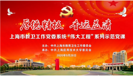在迎接新中国成立71周年的欢庆日子,2020年9月28日下午,上海市教卫工作党委系统“伟大工程”系列示范党课之“厚德精技 香远益清”主题党课在上海应用技术大学奉贤校区大学生活动中心开讲,艺术学院教二支部组织全体党员在24号楼216室集体观看党课直播。