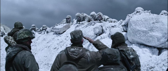 图1 电影《长津湖》镜头:美国军官向中国人民志愿军战士们致敬