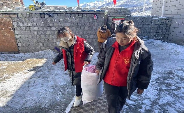 历经半个月的时间,那份携带温暖的包裹从黄土高原到雪域之巅,送至鸽群乡机关党支部党员的手中,党员同志们顶着严寒,走村入户,为困难群众发放过冬衣物,亲手将这份爱心捐赠送至每一户贫困家庭。当党员同志们将捐赠的儿童书籍、文具等学习用品送至困难户玉珍家时,玉珍说深受感动,表示会鼓励孩子们好好学习,将来也要加入中国共产党,学业有成后报效社会。鸽群乡机关党支部党员同志们高度赞扬了文化旅游学院学生的善举,表示此次寒冬送温暖活动是学生们心系社会,关爱他人的善举,是他们用自己的实际行动书写着青年人的社会担当。