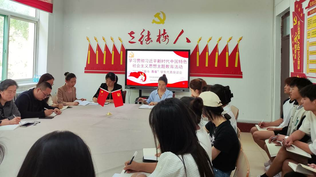 为深入学习贯彻习近平新时代中国特色社会主义思想,扎实抓好主题教育,深入调查研究,倾听学生心声、回应学生关切、关注学生成长,5月15日下午,文化旅游系党总支在党建活动室开展了“奋斗 青春”学生代表座谈会。文化旅游系党总支书记马娟、系主任王雪娟以及全体党员、教师和24名学生代表参加了座谈。