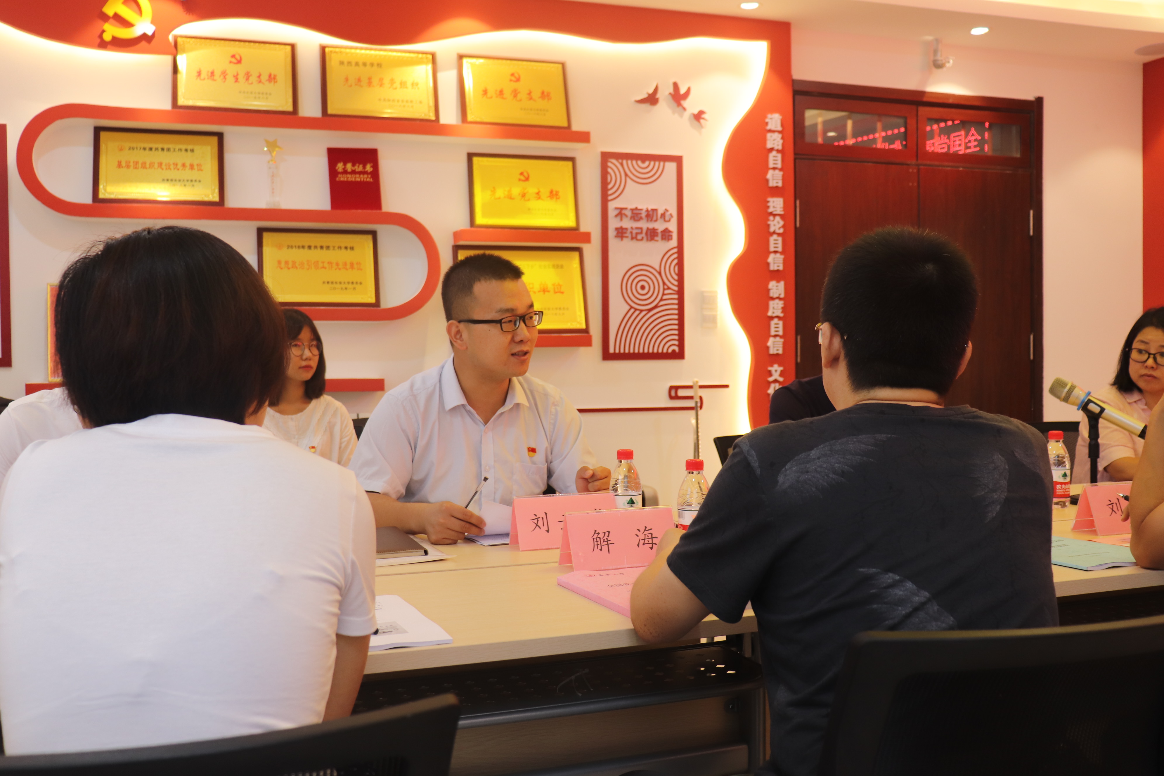 化学与环境工程学院党委书记刘文介绍了学校、学院党建工作基本情况。支部书记解海着重交流了支部在制度建设、红色教育、党建带团建、定点扶贫体验式教育、党员成长手册、毕业生党员教育、服务群众等特色工作。