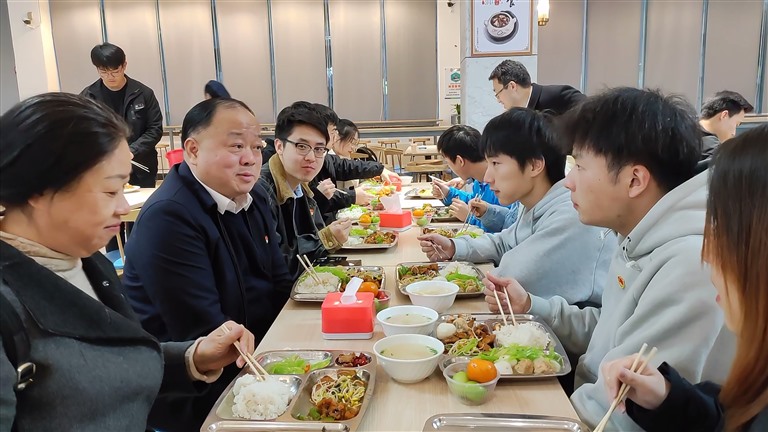 主题党日活动后,王炎廷深入对口联系的学生寝室和班级,和学生一起在欣苑食堂共进晚餐,详细了解了学生们的家庭状况和学业情况,表示将帮助他们解决实际困难。