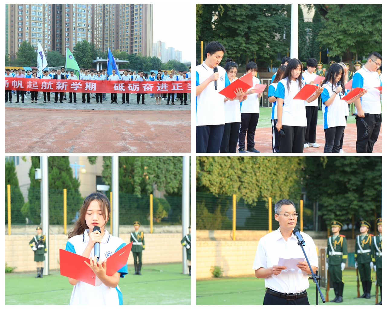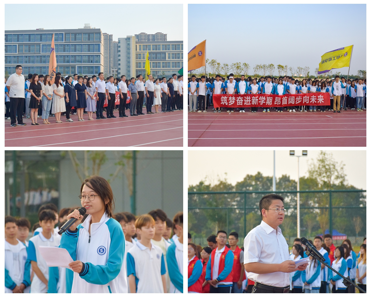 百舸争流千帆竞,乘风破浪正当时。9月4日,迎着清晨的第一缕朝阳,我校分别在渭城校区、经开校区举行了第一次“国旗下的成长”主题教育活动,此次活动的主题分别是“扬帆起航新学期,砥砺奋进正当时”“筑梦奋进新学期 昂首阔步向未来”。学校党委副书记贺天柱、党委副书记田昊、学工部相关同志、各二级学院党总支书记、二级学院学工办主任、土木工程学院、信息工程学院全体辅导员及教师代表、团学联学生代表、二级学院学生代表参加了本次主题教育活动。