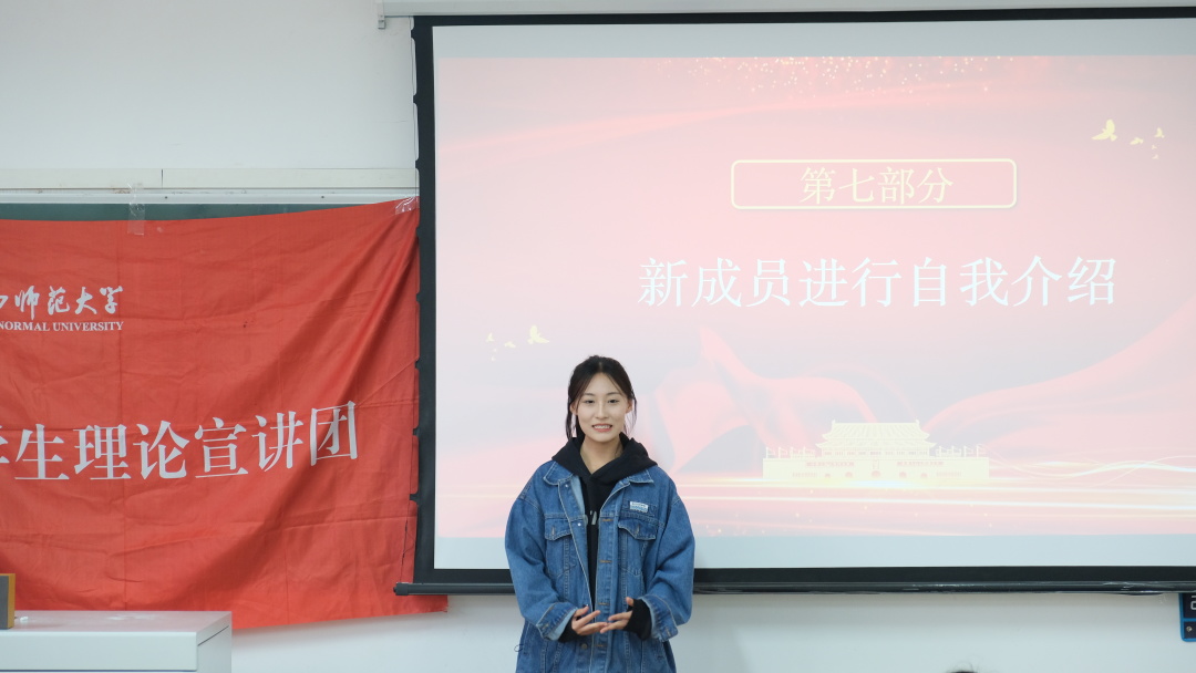 会上宣讲团学生负责人郭宇焘从自身经历、技能技巧、宣讲的注意事项等方面以自身成功的事迹,向同学分享经验、勉励大家付诸努力、成就自我。负责人申丽蓉从专业契合、能力提升、拼尽全力、奔赴热爱等方面进行经验分享,鼓励大家坚守初心、珍惜机会、不断超越自我。贾倩等四名同学从自身成长经历分享了个人收获。随后,播放了历年宣讲视频,回顾宣讲团成绩,激励新团员向优秀成员看齐,砥砺奋进。牛书记向新团员提出要求,要继承宣讲团的优良传统,坚持不懈、长期学习,淬炼思想、锻造本领,尽快成长成为宣讲团的中坚力量。