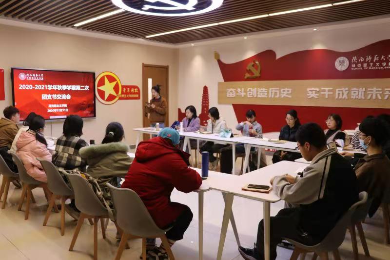 12月11日晚,我院团委于长安校区文澜楼3508室召开2020-2021学年秋季学期第二次团支书交流会暨《习近平与大学生朋友们》读书探讨活动。学院团委副书记、2019级研究生刘瑾芮及各团支部书记参加本次会议,会议由学院团委副书记、2018级本科生熊汇铭主持。