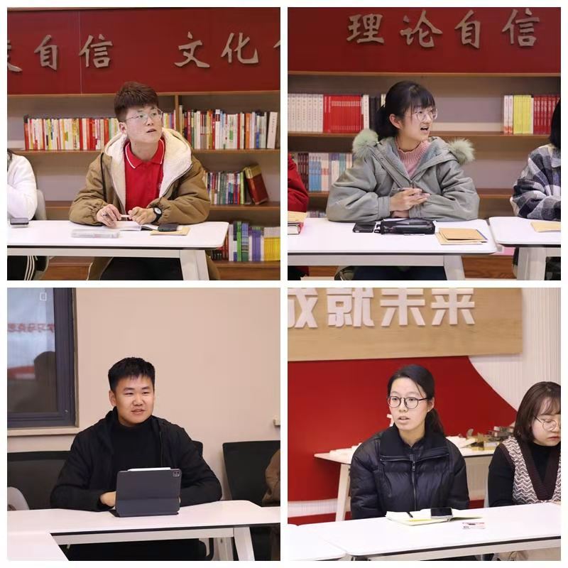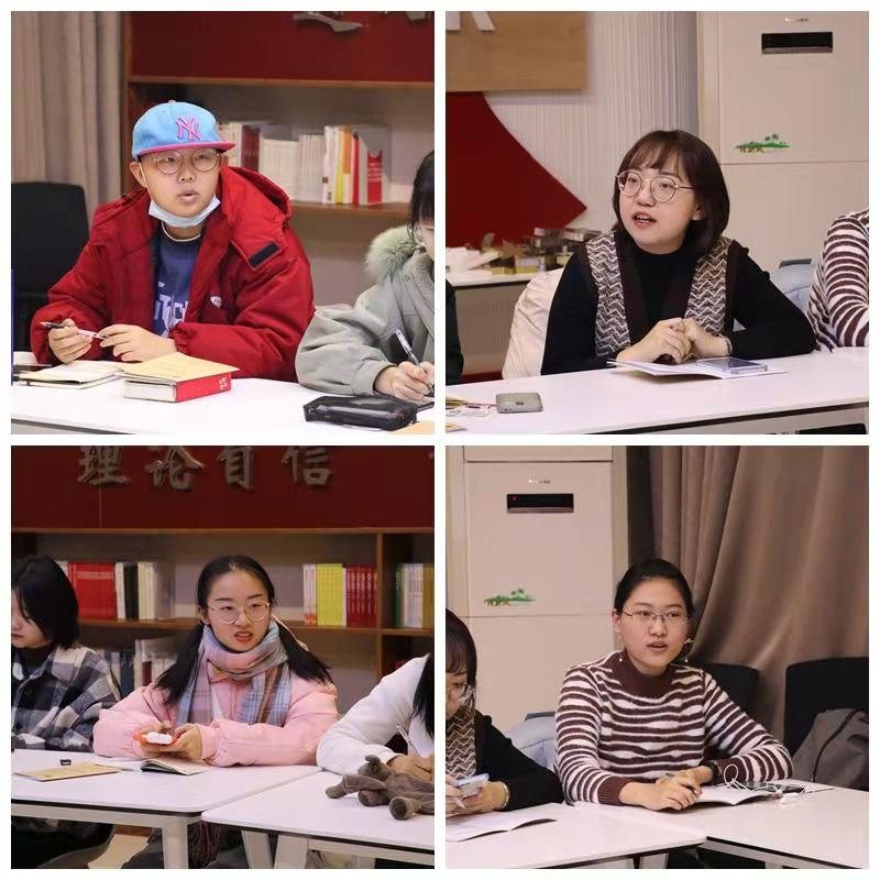 熊汇铭介绍了本次会议的目的与环节,刘瑾芮带领全体团支部书记对《习近平与大学生朋友们》进行了学习,随后各团支部书记进行了心得分享。2017级思想政治教育二班团支部书记乔青青结合自身经历、经验分享了关于“为什么要学习马克思主义?”的理解;学院雁塔校区团总支副书记、2020级本科生闫珮从理论和实践两个维度谈了对于如何做到“真学、真懂、真信、真用”的理解;2019级思想政治教育一班团支部书记刘旭从教师与学生之间的关系分享了如何成为“四有”好老师的思考;熊汇铭就“新时代大学生应当是什么样的”这一问题,对大学生活的状态进行了分享。各团支部书记的学习心得结合自身工作,理论联系实际,体现了我院团学干部实事求是、脚踏实地的工作作风与精神风貌。