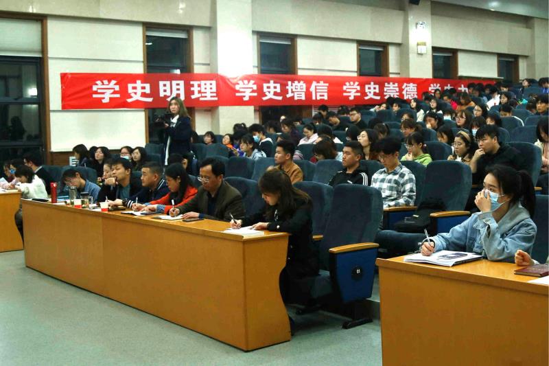 为深入开展党史学习教育,学习贯彻习近平新时代中国特色社会主义思想,庆祝中国共产党成立100周年,在学校党委部署下,我校马克思主义学院面向全校学生开设了《中国共产党百年史—党史学习教育系列理论讲座》专题思政课。4月11日晚,系列讲座课程第一讲《经天纬地:马克思主义中国化百年的伟大创造》在雁塔、长安校区同步开课,我校副校长、马克思主义学院院长任晓伟教授,马克思主义学院阎树群教授担任主讲。我校2019级、2020级国家公费师范生卓越教师实验班学生及师生代表近700人参加了课程报告会。