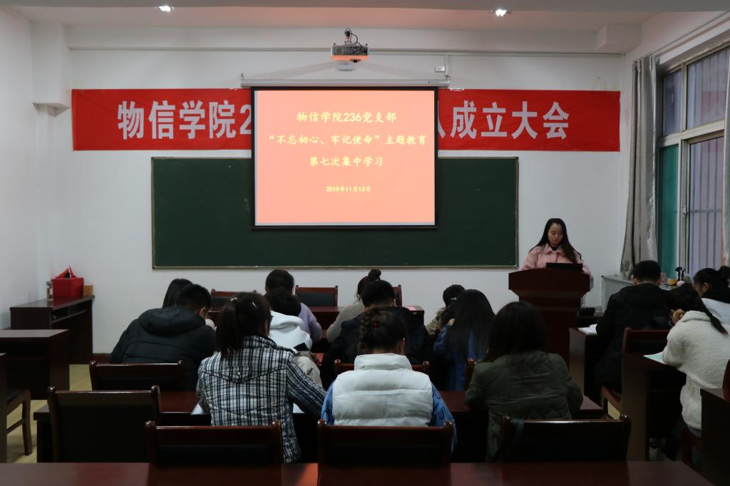 20191113日下午500,我院236党支部在四号楼二层多功能会议室举行不忘初心、牢记使命主题教育第七次集中学习活动。支部全体党员参加了此次会议。