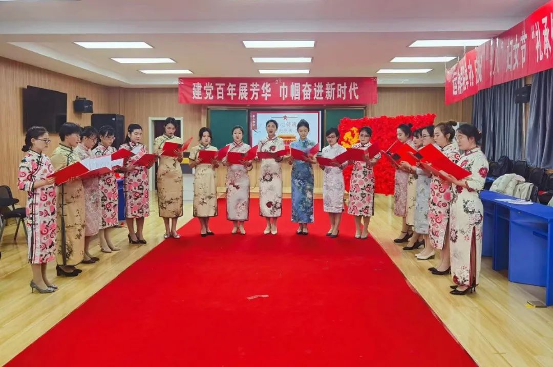 礼韵芳华、茶韵诗心、舞韵青春共同组成了本次活动的“礼艺传承”环节。运营党支部教师领衔演绎旗袍礼仪操,党支部教师何凯妮带领学生进行茶艺展示,学生代表古典舞表演……旗袍行礼之姿,奉茶礼敬之道,舞乐怡礼之美,匠心传承、古今辉映,彰显了女教职工们柔美端庄、温润清丽的贤淑风范。