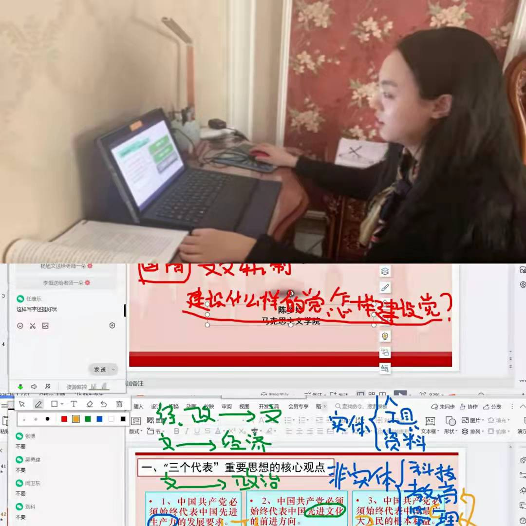马克思主义学院严格按照教学工作部有关要求,为确保疫情防控期间教育教学工作扎实有效开展,积极统筹规划,及时启动了线上线下工作预案,安排教师全面开展线上教学,不折不扣地完成教学任务,保证学生在疫情期间“停课不停学”;各教学团队及时安排期末线上考试工作,全体教师合理分工进行线上考试测试,保证考试顺利进行;紧抓行政工作不放松,部门在特殊时期,不断创新工作方法,通过线上会议形式,顺利完成年终各类考核工作,教学团队紧抓集体备课、教育教学改革研究工作不放松。