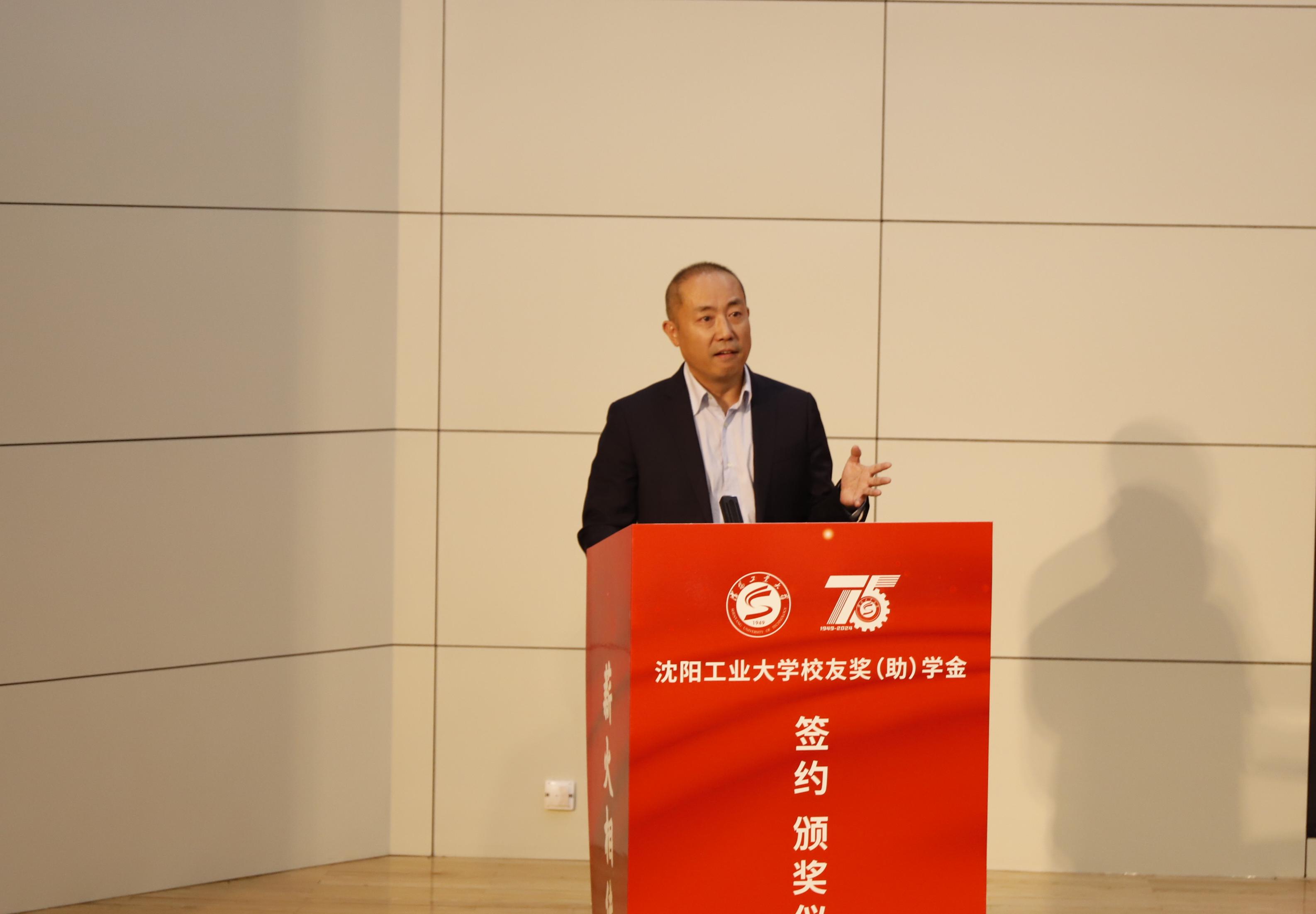 沈阳工业大学“四家”奖学金、沈阳工业大学“宝菊”创新基金、电气工程学院“文化基金”、信息学院“泽信·薪火”基金、文法学院“宝菊”校友基金五项奖学金的校友企业、校友代表与校方代表依次签约,泽信·雏鹰基金捐赠人郭巍发来庆贺视频。