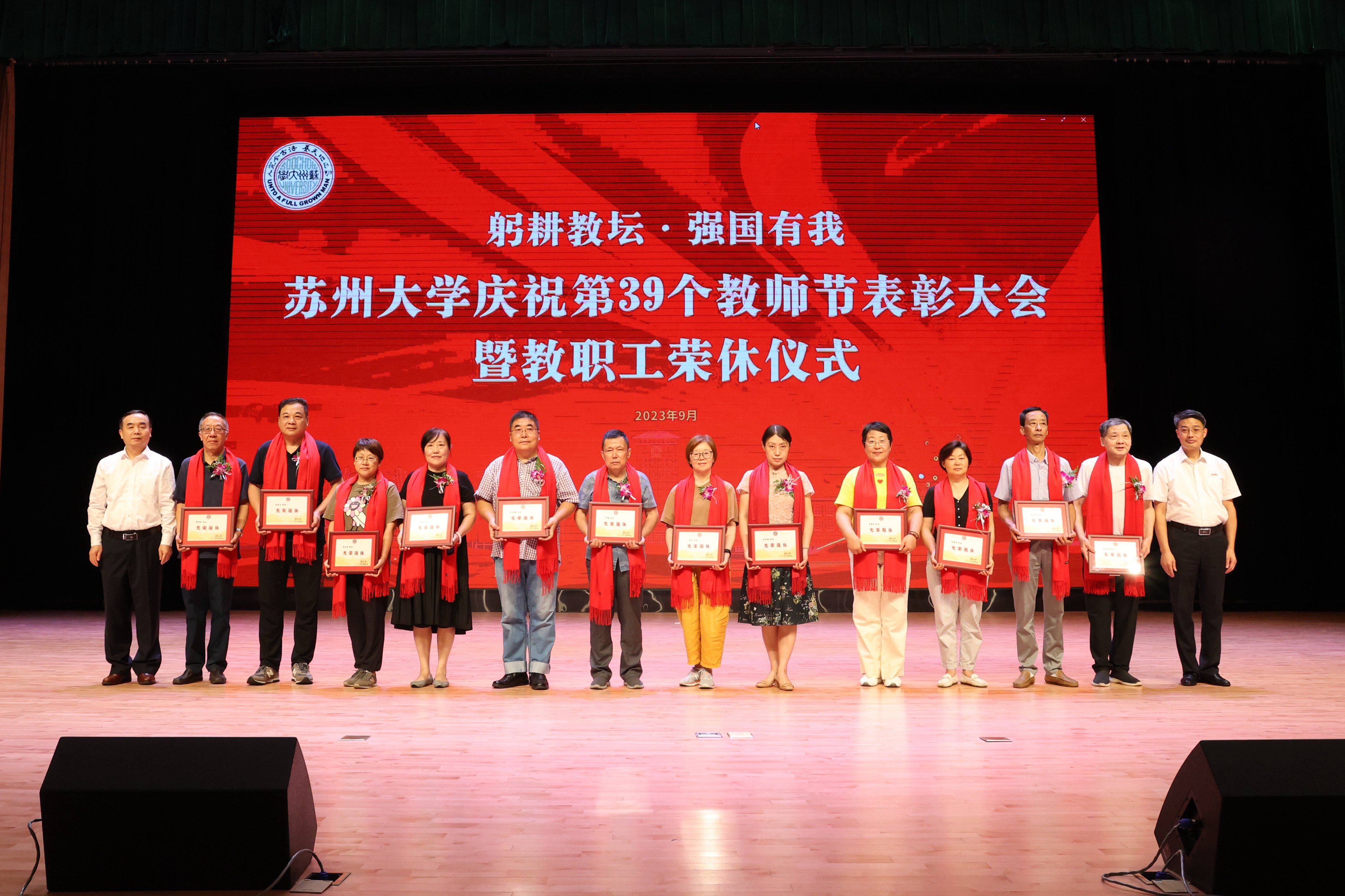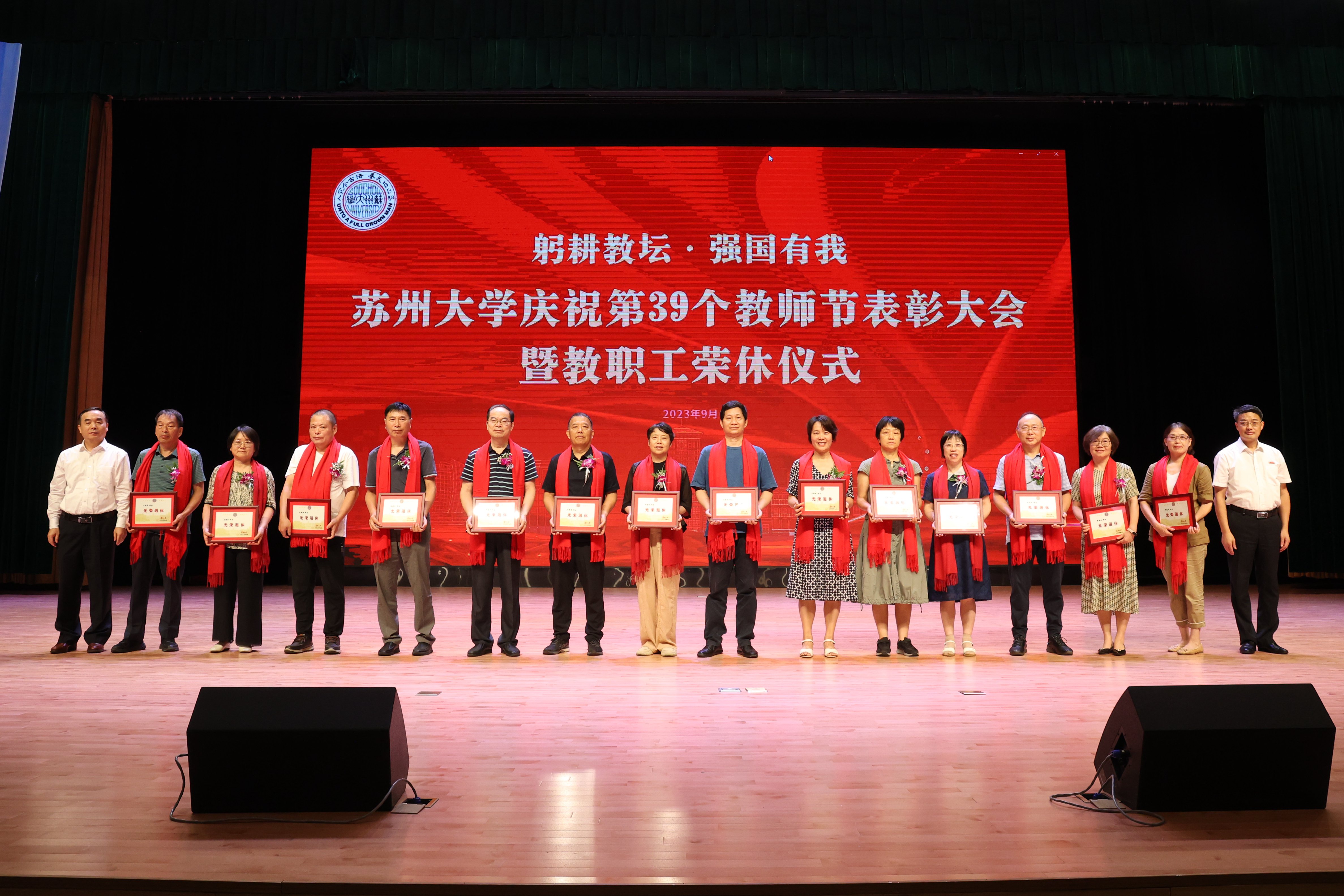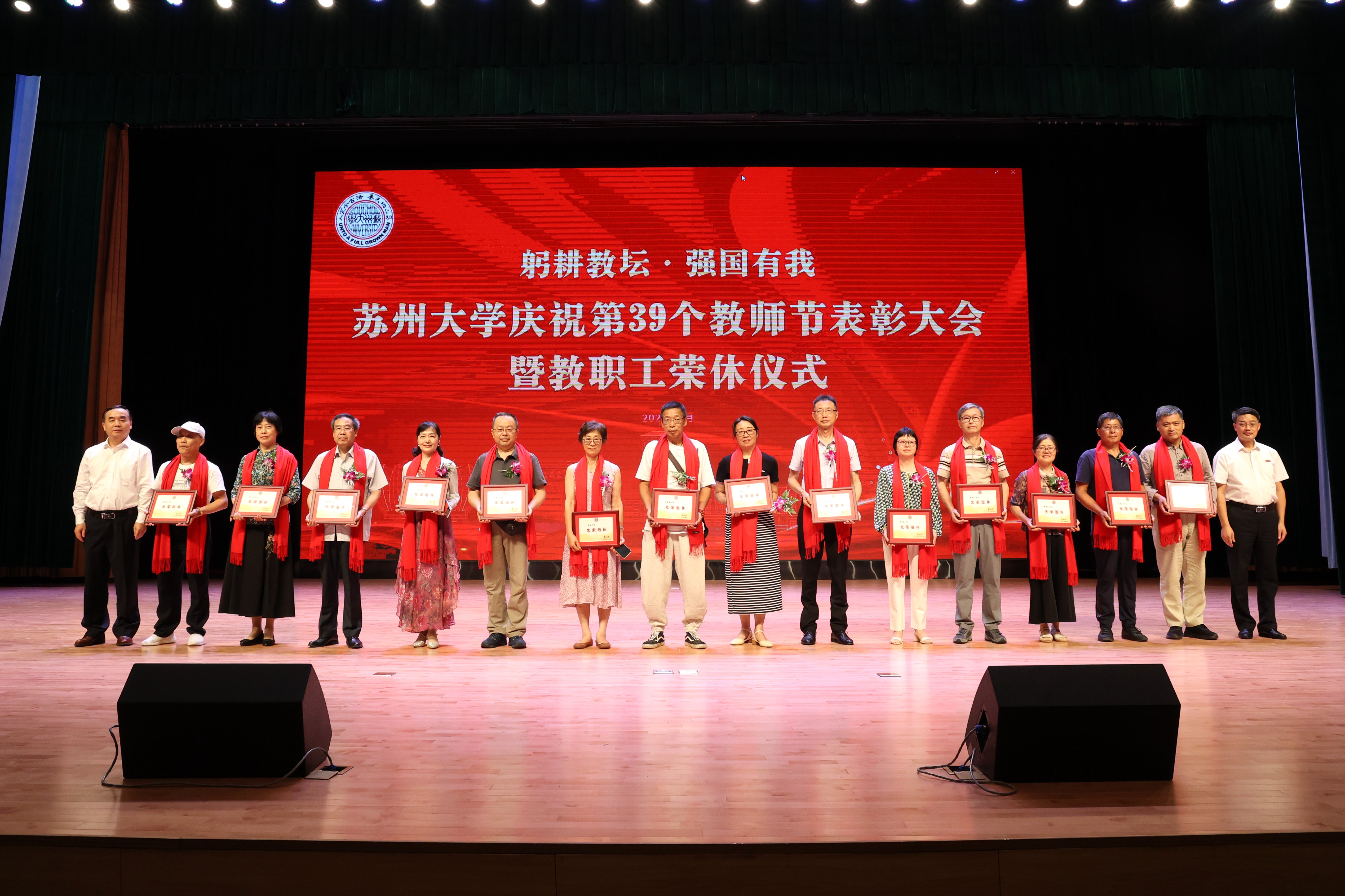 在第39个教师节来临之际,我校举行系列活动庆祝教师节。9月8日下午,苏州大学庆祝第39个教师节表彰大会暨教职工荣休仪式在天赐庄校区存菊堂举行。校党委副书记、校长张晓宏,在校校领导,部分院士,“高尚师德奖教金”获奖教师,荣休教职工以及工作满30年的教职工代表,各学院(部)、部门、直属单位主要负责人,教职工代表,学生代表参加了会议。会议由校党委常委、副校长姚建林主持。