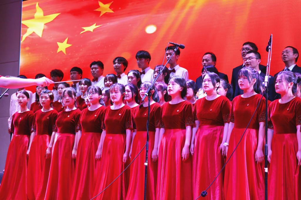 展演现场的歌声时而气势恢宏,时而细腻悠扬,展演师生们将百分百的热情投入其中,为大家带来了一场精彩的视听盛宴,用满怀感恩的歌声送给党。