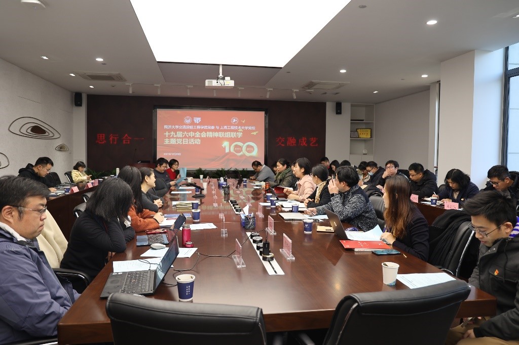 为深入学习贯彻十九届六中全会精神,从中国共产党百年奋斗的重大成就和历史经验中汲取力量,加强校际党建交流,深入推进落实交通强国战略,12月29日,同济大学交通运输工程学院党委与上海工程技术大学党校在嘉定校区通达馆开展联组联学主题党日活动。