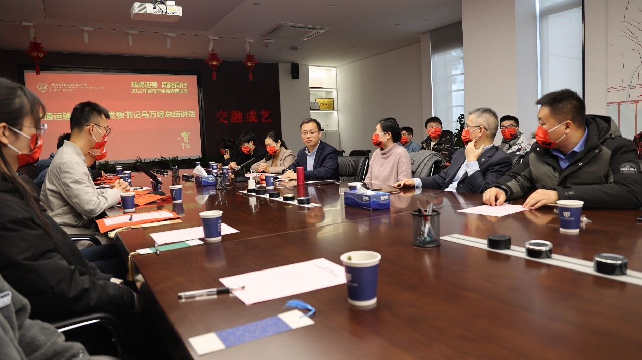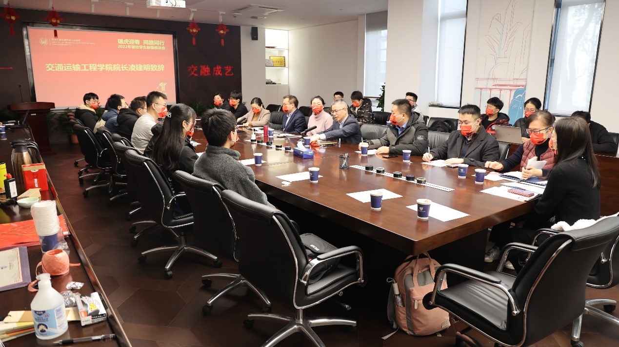 交通运输工程学院院长凌建明代表学院向寒假留校同学致以诚挚的新春问候。他首先回顾,2021年恰逢建党百年,国家综合运输交通网络规划纲要的出台也为学院发展带来新的机遇,学院在党建、人才培养、科学研究、社会服务、对外合作交流等方面都取得了喜人的成绩。这些成绩的取得,离不开学校各个职能部门的支持,离不开学院全体师生的努力。展望2022年,凌院长认为整体形势一定会比2021年更好。这个寒假,同学们或因为疫情影响、或完成学位论文、或因为实习工作等原因选择留在学校,虽然少了与家人团聚的热闹场景,但也多了与同学们一起过年的经历,二十年后这种经历将成为同学们美好的回忆。凌院长也寄语各位同学,留校期间多与父母家人联系,在校期间有任何困难或者需要都向辅导员、班主任、导师等提出来。最后,凌院长提醒同学们注意疫情防控、人身、交通等方面的安全,并祝福大家虎年吉祥、家庭幸福、学业进步,在学校度过一个健康安全的新年。