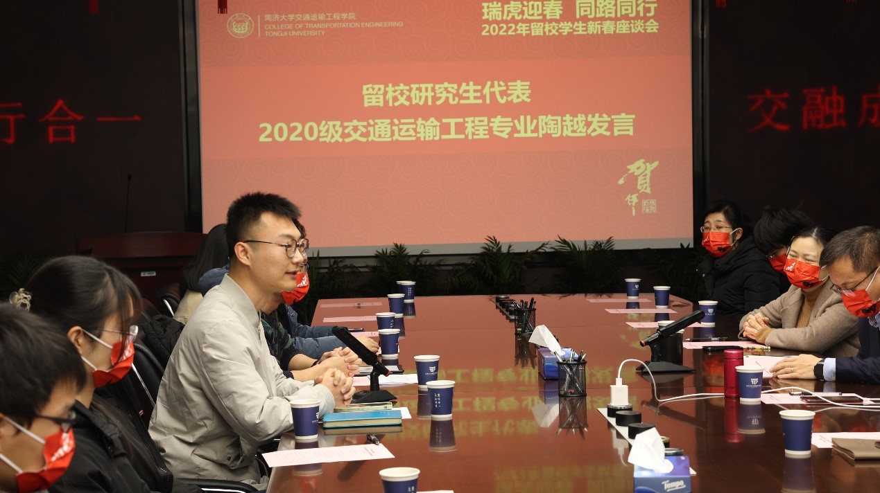 2022年1月20日,农历腊月十八,正值“大寒”节气。“明朝换新律,梅柳待阳春。”大寒之后正是各家各户开始准备年货,等待一年中最盛大的节日的时候。同济大学交通运输工程学院举行“瑞虎迎春,同路同行”2022年寒假留校学生新春慰问活动。慰问活动分为寒假留校学生新春座谈会、餐叙和宿舍走访三个部分。