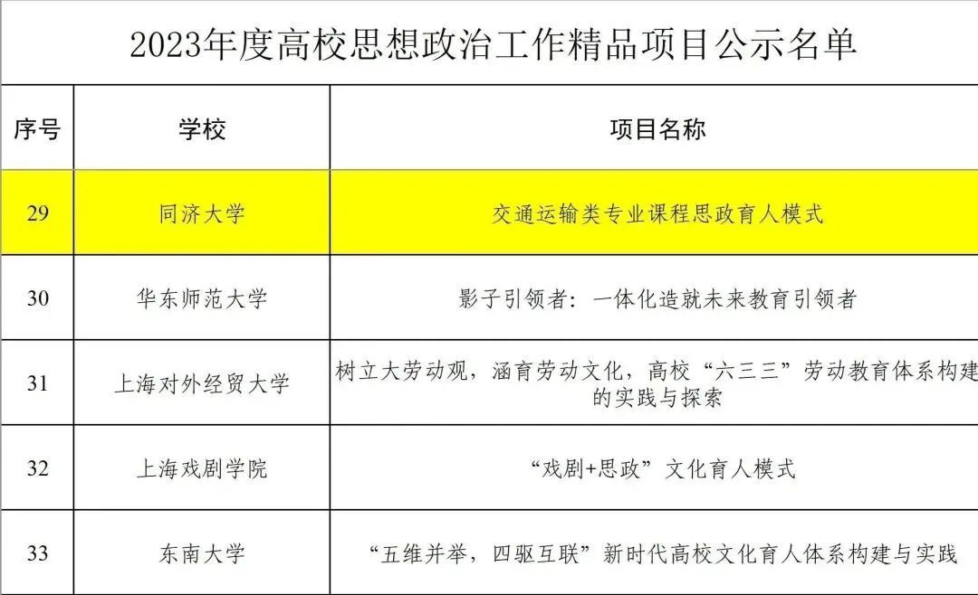 “交通运输类专业课程思政育人模式”入选2023年度高校思想政治工作精品项目。