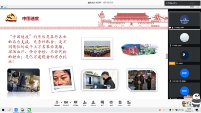 闫飞老师从围绕中国共产党是一个什么样的党、要为谁服务和以什么为行动指南三个问题展开,通过大量生动的案例和历史故事,深入浅出、全面系统地阐释了中国共产党的性质、宗旨和指导思想,结合习近平总书记在5月4日纪念马克思诞辰200周年的讲话带领大家回顾了马克思主义诞生的背景,重点解读了习近平新时代中国特色社会主义思想。闫飞老师通过疫情期间十天建成“火神山、雷神山”两座放舱医院的实例,阐述了“中国速度”。