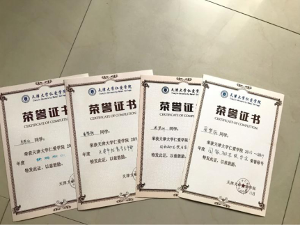 荣获天津大学仁爱学院2017-2018年度优秀学生