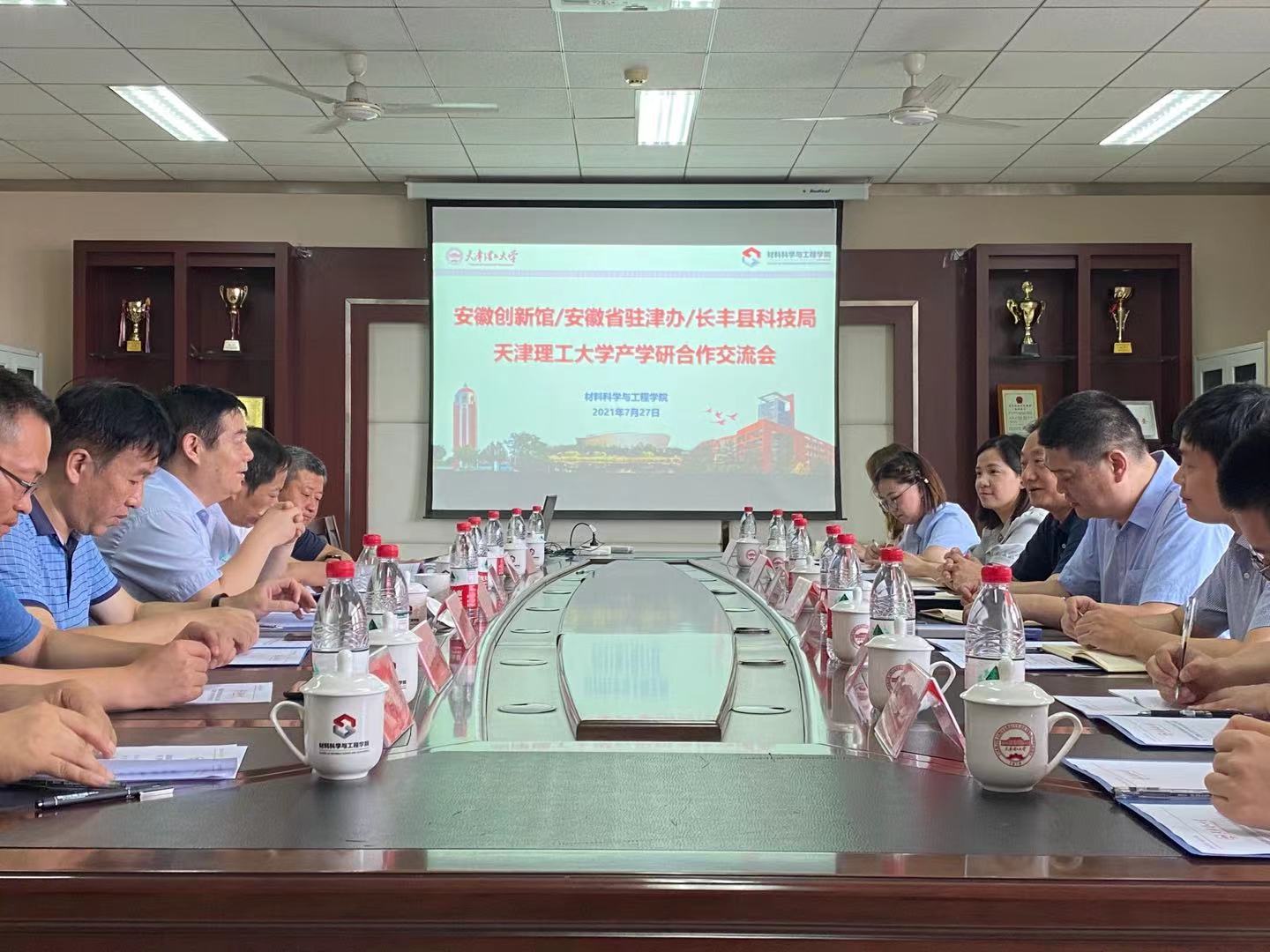 近日,安徽创新馆、安徽省政府驻津办、长丰县科技局与材料科学与工程学院举办产学研交流合作会议。安徽省政府驻天津办事处主任李立新、安徽省创新馆服务管理中心主任陈林、安徽长丰县科技局局长张帆、天津理工大学绿色纳米技术研究院院长袁志好出席,安徽创新馆部门负责同志及材料学院教师代表参加了本次活动。