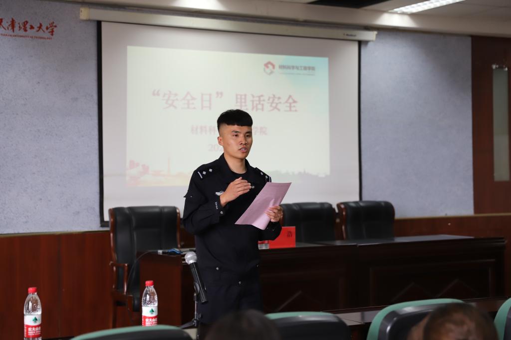 2021年4月15日,正值第六个全民国家安全教育日,为深入贯彻落实习近平总书记关于做好国家安全工作的一系列重要指示批示精神,牢固树立总体国家安全观,增强广大师生的安全意识,材料学院举办“安全日”里话安全主题教育活动。天津市西青区学苑派出所姜浩警官、天津理工大学保卫处寇林峰老师,200余名研究生参加活动。