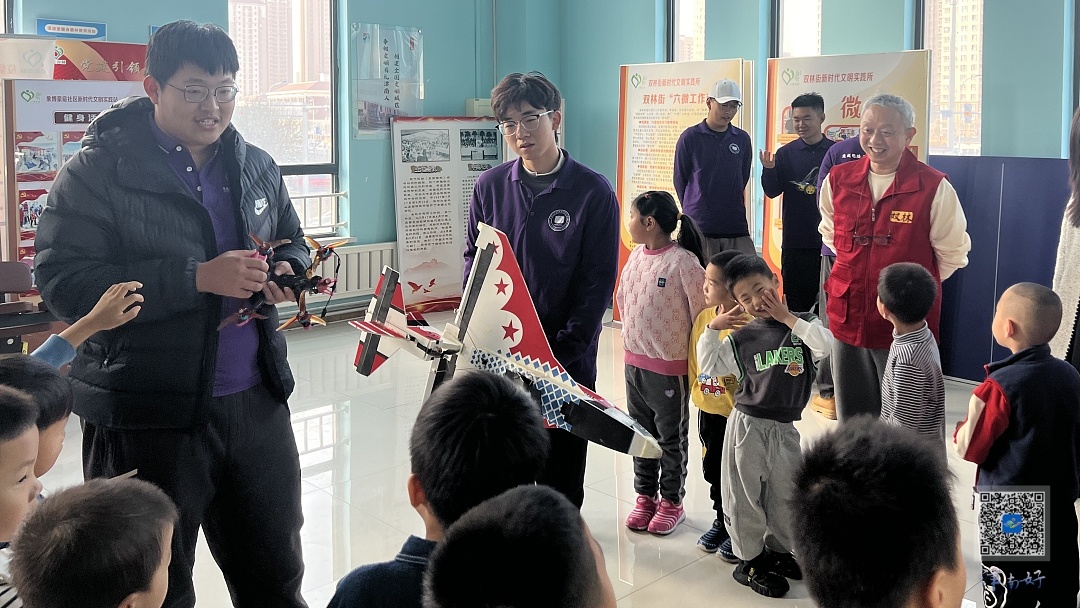 活动现场,来自天津理工大学集成电路科学与工程学院的志愿者们用通俗易懂的语言向孩子们介绍了遥控汽车的运行原理、航天飞机的具体构造等知识,带领大家开启科技探索之旅。小朋友们热情高涨,积极举手与志愿者们进行互动,好奇的小眼睛紧紧“跟随”着科技设备。在老师和志愿者的带领下,孩子们纷纷上前体验,触摸航天飞机模型、远程操控遥控汽车,并走到室外观看志愿者操控无人机,在亲身体验中感受科技的力量。