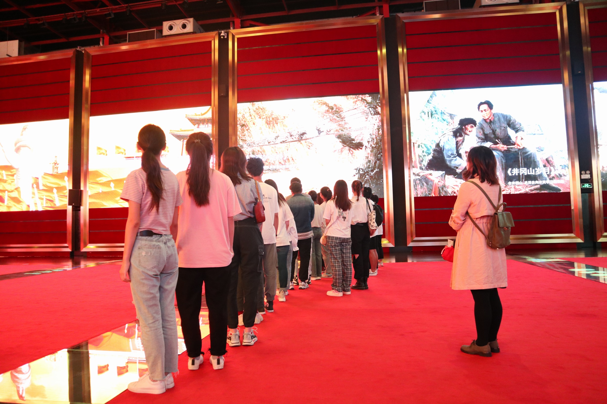 进入展馆,时空殿堂通过大型LED屏讲述了自1921年中国共产党的诞生至1949年新中国成立的光辉历程。大屏幕将28年间的重大事件逐一呈现,跟随时代的脚步不断向前迈进,全体党员仿佛置身于当年波澜壮阔的历史场景,心灵受到洗礼。