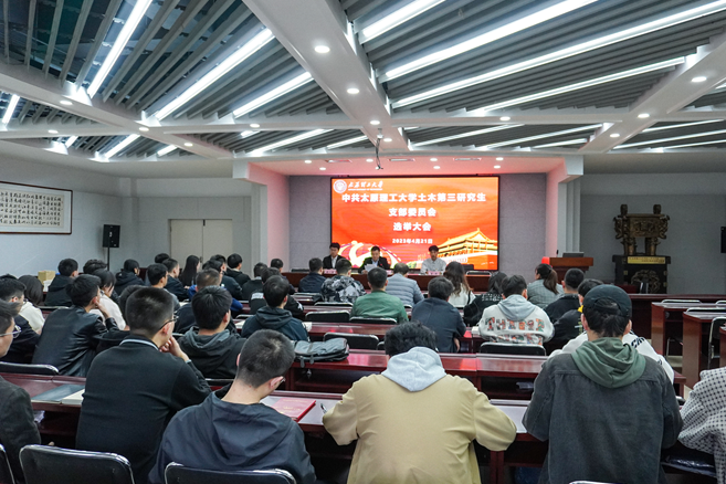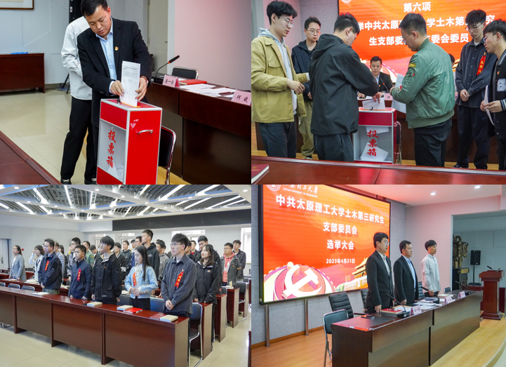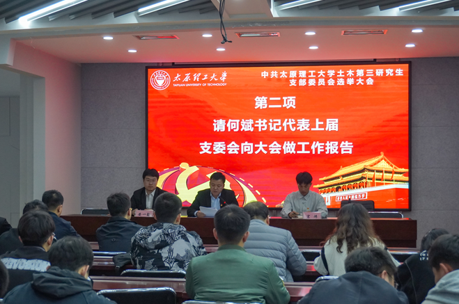 经土木工程学院党委批准,4月21日,中共太原理工大学土木第三研究生支部委员会召开换届选举大会。会议由上一届支部书记何斌主持,应到正式党员50名,实到正式党员41名,符合换届改选的有关规定,选举正式开始。
