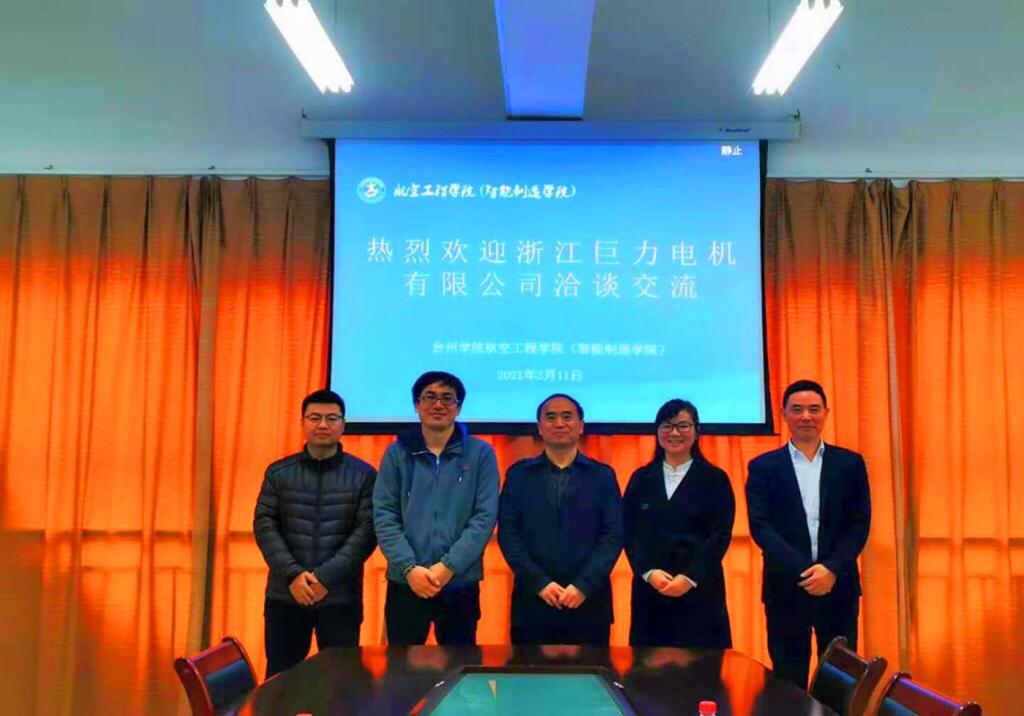 3月11日上午,浙江巨力电机成套设备有限公司总经理叶国强和台州市人力资源服务协会执行秘书长柏余红一行到航空工程学院进行院企合作及人才招聘洽谈,院长张永炬、党总支副书记梅娇以及党员骨干教师参加洽谈交流。