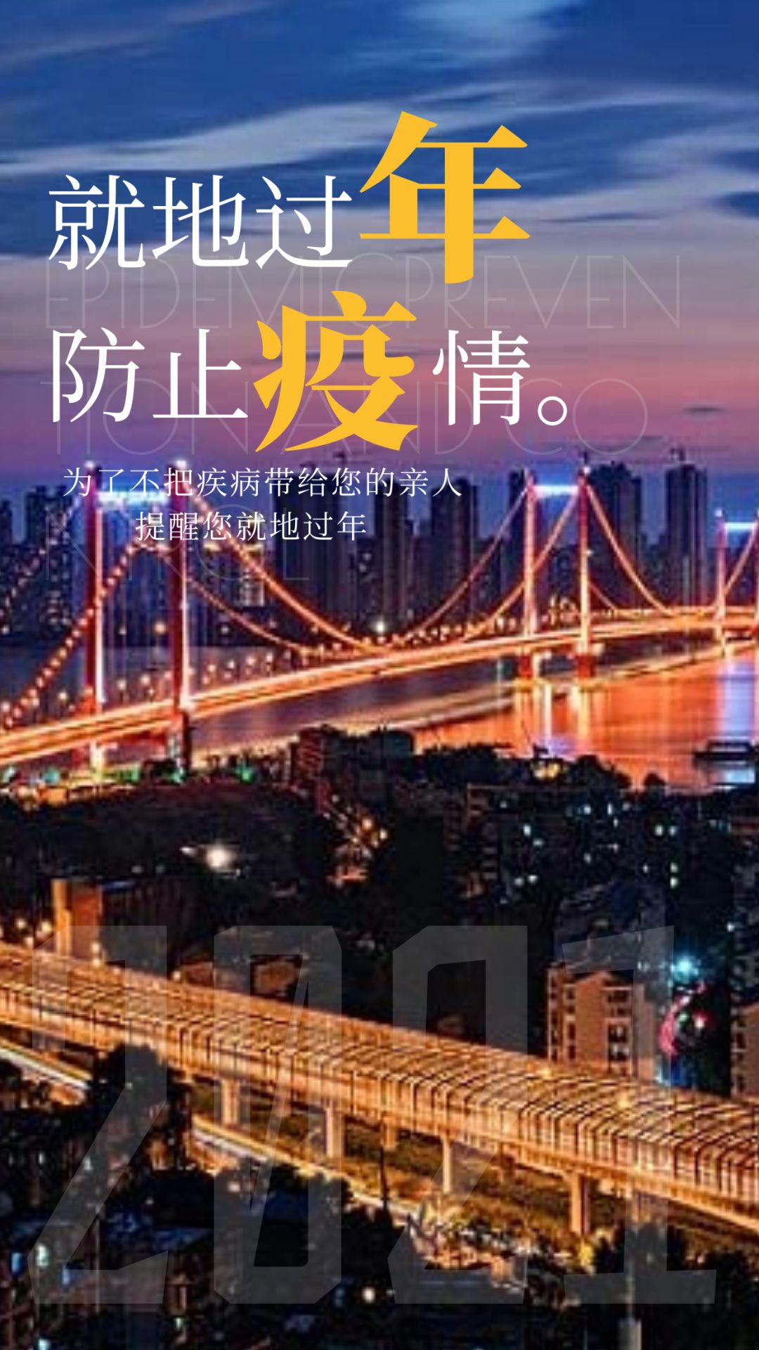疫情的阴霾从去年笼罩到现在,2020年,全国人民在以习近平同志为核心的党中央的坚强领导下,我们取得了新冠肺炎疫情的阶段性胜利和重大成果!而今,随着传统节日春节的到来,春运节奏的开启,疫情防控形势依然不能松懈!各地政府、企业响应国家号召,倡议工作地过年、就地过年,以实际行动保护自己,防护家人。疫情防控,人人有责,我们期待2021疫霾散去,春暖花开,家人团聚和谐幸福!
