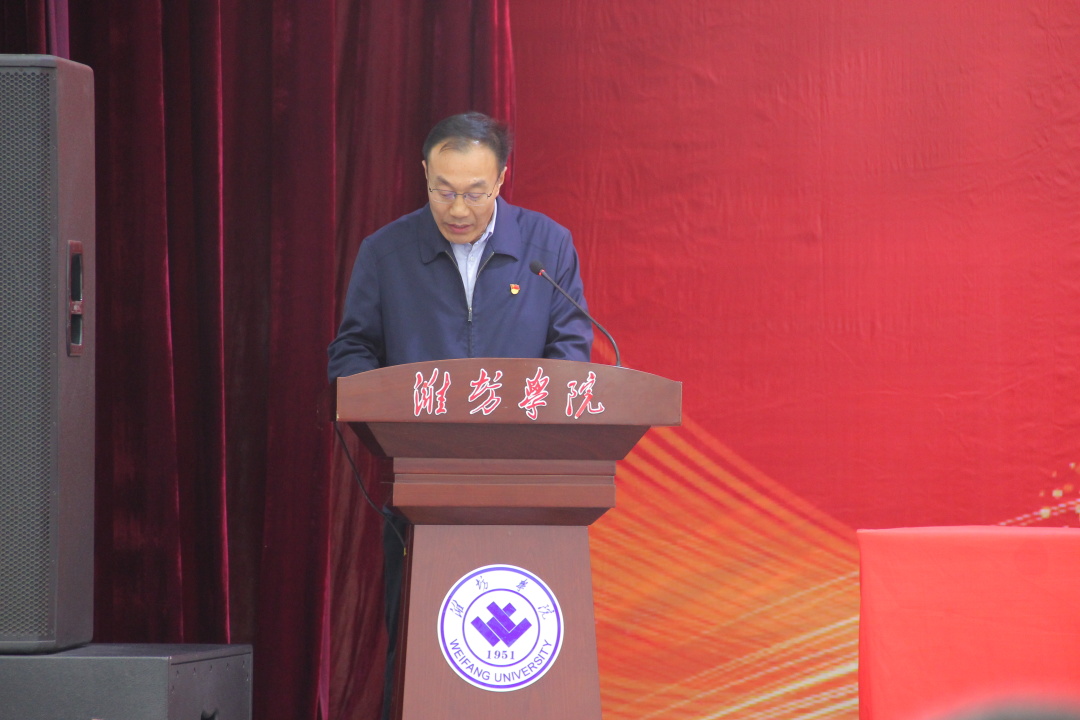4月28日上午,学校第二届大学生党建创新研讨会在闻韶楼报告厅举办。学校党委书记李东,潍坊市委教育工委副书记、市教育局党组成员周书坤,学校党委副书记王清明,党委委员、宣传部部长单振涛出席。党委委员、组织部部长李连成主持会议。本次研讨会由学校党委组织部主办,物理与光电工程学院党总支承办,各学院党总支书记、副书记,教师、学生党支部书记和师生党员代表,学校党委相关职能部门和团委、弘德书院负责人参会。