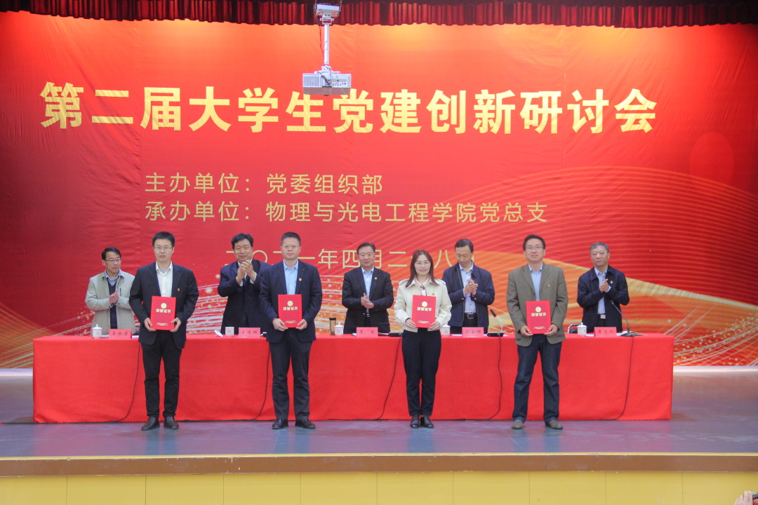 会上,承办单位物理与光电工程学院党总支副书记贺志波介绍了学院党总支“12365”党建工作法、培育创建全国和省样板支部等工作上的实践及成果。学校党委委员、宣传部部长单振涛宣读了党建创新优秀成果表彰决定,大会为获得优秀研讨成果奖的代表进行了现场颁奖。8位获奖者分别代表教师党员、学生党支部书记、教师党支部书记、党总支委员作了典型发言,介绍各自党组织与党员本人在疫情防控常态化下开展大学生党建创新的实践经验。