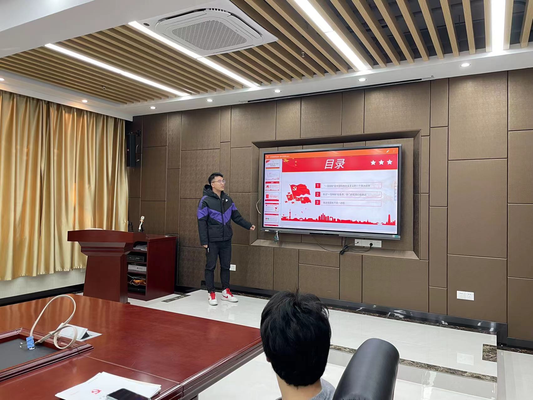 研究生第一党支部副书记张宇标同志讲微党课,带领大家一起学习《习近平新时代中国特色社会主义思想学习纲要》。微党课主要分三个部分:一是“一国两制”是中国特色社会主义的一个伟大创举;二是推进“一国两制”在香港、澳门的实践行稳致远;三是推进祖国和平统一进程。