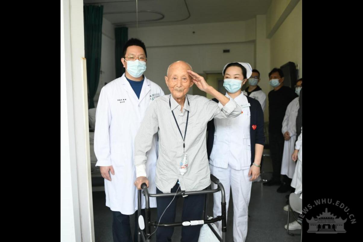 新闻网讯(通讯员杜巍巍、宁亚飞、杨岑)10月25日,是中国人民志愿军抗美援朝出国作战71周年纪念日。当日下午15:00,91岁高龄的志愿军老战士蒋遵海,在武汉大学人民医院骨II科成功接受手术后重新站立起来,并面向远方郑重敬了一个军礼,“我永远忘不了牺牲在朝鲜的战友们!”