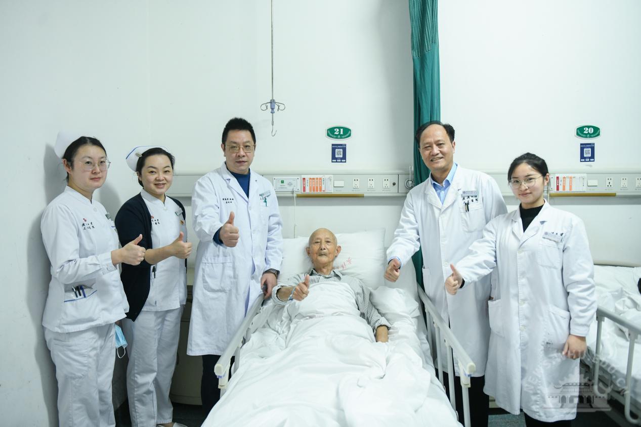 为了照顾好这位“最可爱的人”,骨II科上下全体高度重视。党支部书记兼护士长陈蕾专门为老人开辟了全程“绿色通道”,方便他快速入院并给予精心护理。因老人严重贫血、又有心血管等基础疾病,科主任彭昊教授指导周庞虎手术组,对老人的治疗再三讨论,制定手术方案和应急预案。