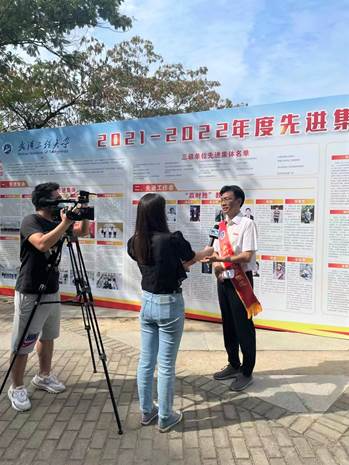 化机教研室作为三级单位获学校先进集体,支部书记杨红教授获“赢时胜”教学模范,教研室戈延林副教授获“赢时胜”科研模范。获奖集体及个人代表分别在会上做了交流发言。杨红教授作为教学模范代表在大会发言,并在会后接受了湖北新闻记者的访谈。