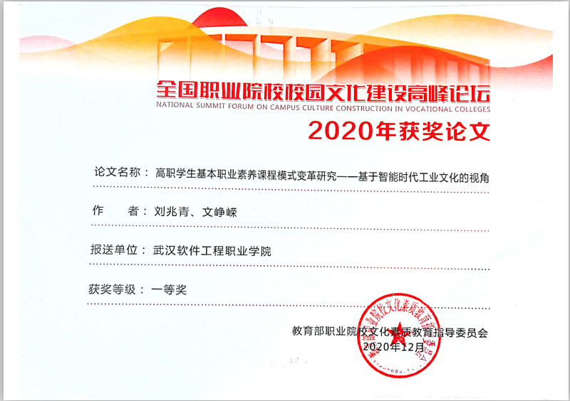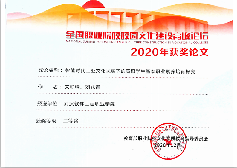 近日,2020年全国职业院校校园文化建设高峰论坛在浙江金华召开,人文学院第一党支部教师刘兆青、文峥嵘提交的《高职学生基本职业素养课程模式变革研究——基于智能时代工业文化的视角》与《智能时代工业文化视域下的高职学生基本职业素养培育探究》两篇论文分别荣获一等奖和二等奖。文章探讨了未来智能时代高素质职业人的素养画像,也探讨了人工智能技术不断发展的时态下,作为高校教师需要如何设计课程,实现职业精神培育与职业能力的双提升。