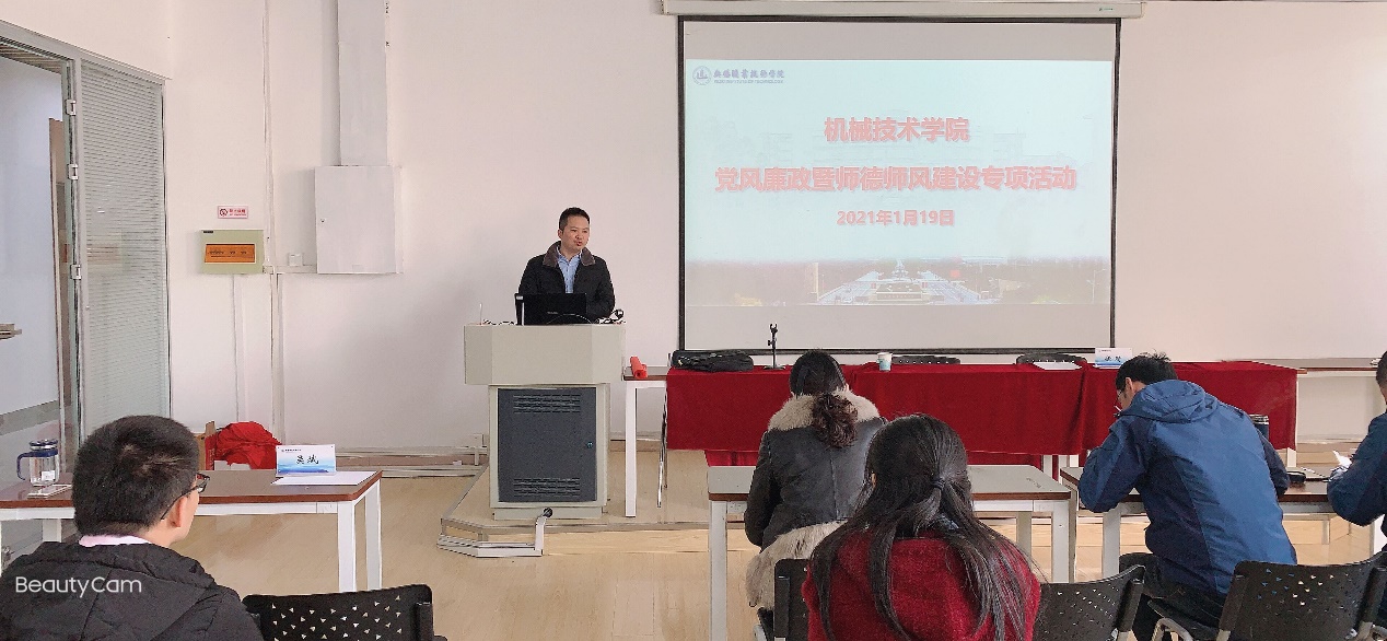 2021年1月19日,机械学院党总支组织召开了党风廉政暨师德师风建设专项活动。学院全体教职工参加了本次活动。