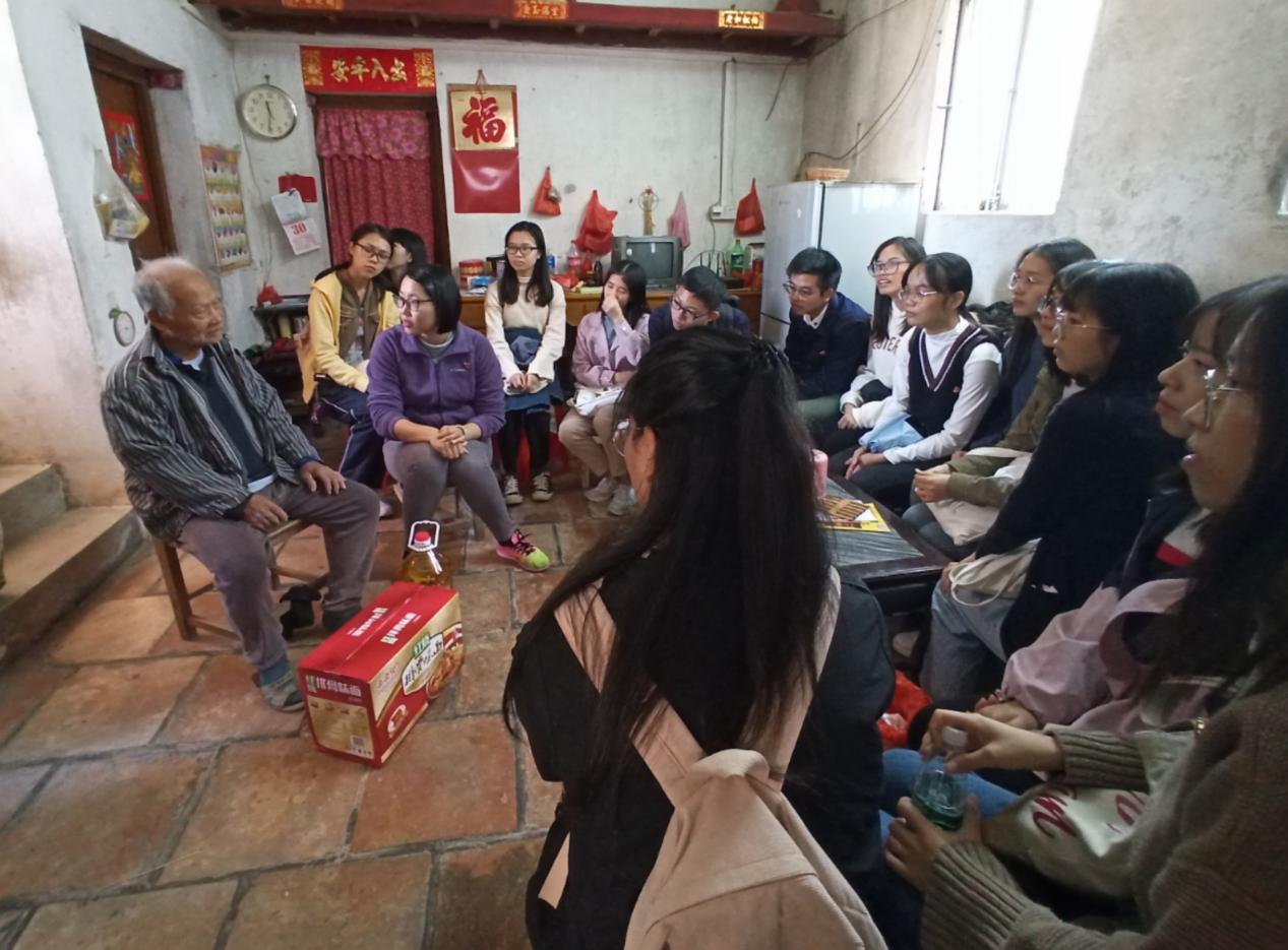 最后,在村干部的带领下前往当地83岁老党员周贤佳家中进行慰问,该同志于1969年9月入党,曾任当地合作社出纳、生产社大队长等职务,通过座谈会,周贤佳老同志分享了当时社会经济发展及党员在社会经济发展中发挥的先锋模范作用,并鼓励同学们好好学习专业技能方能更好服务社会。