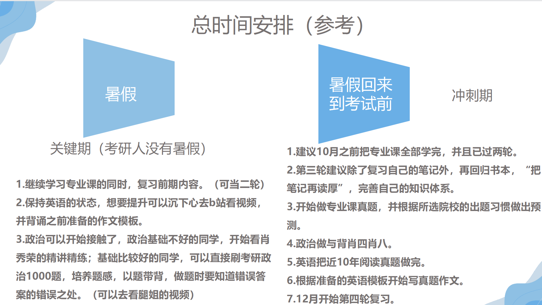 最后,谭浚儒同志还分时期为同学们做出考研规划:
