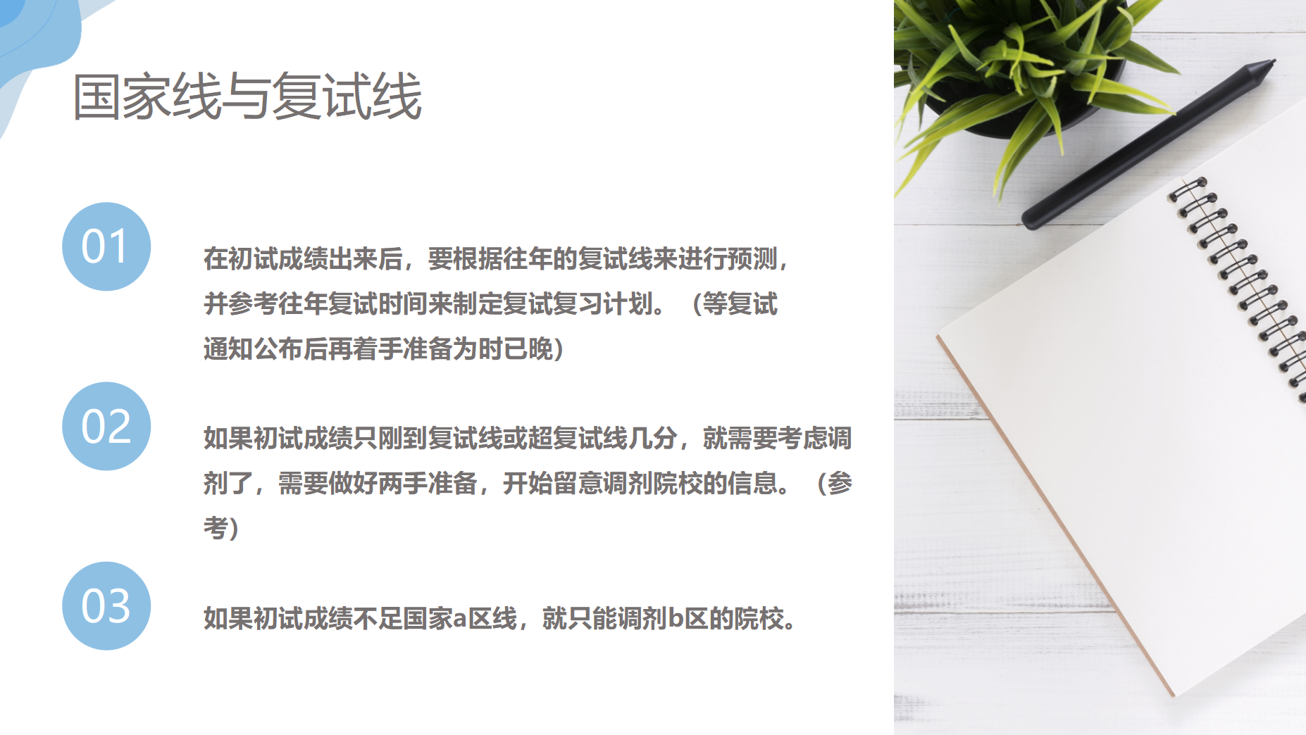 谭浚儒同志谈到初试成绩出来后,要根据往年的复试线来进行预测,尽早做好复试准备。