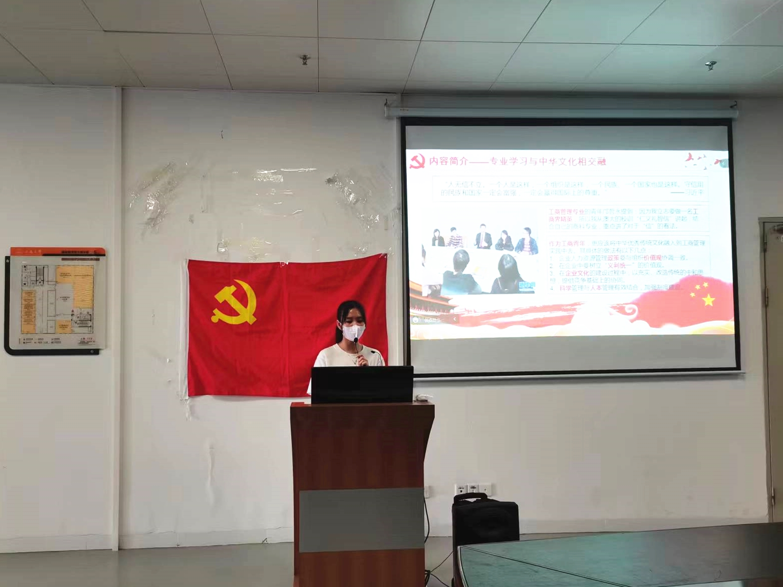 活动开始前,许容榕老师首先对新加入党支部的积极分子表示了热烈的欢迎,其次她强调到:作为当代青年大学生,应该树立远大理想,要敢于破旧立新;要乐于且努力学习,具有容纳新知识的潜力。当代大学生要明确自己的历史使命,肩负起实现中华民族伟大复兴的历史使命。要不断地坚定理想信念,完善自身能力,磨练自身意志,时刻胸怀祖国,谨记情系群众,思想上始终与党组织保持一致,忠于党和人民,不断实现自我价值。