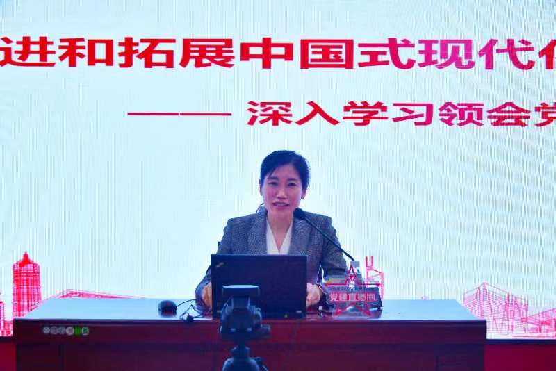 2022年11月17日下午,温州大学马克思主义学院何玲博士在温州市瓯海区南白象街道党服中心开展了以“推进和拓展中国式现代化——深入领会党的二十大精神”为主题的线上线下专题党课。