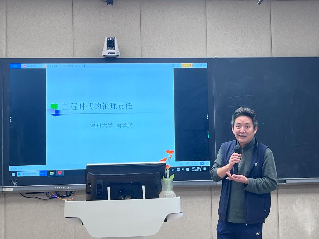 4月19日下午,温州大学高校课程思政和思政课程协同育人沙龙活动,在北校区信息楼A307顺利进行。本次活动由温州大学教务处、马克思主义学院、全国高校名师工作室(温州大学)主办,温州大学教发中心、高校课程思政协同育人课题组、《工程伦理》课程思政多元协同建设研究课题组承办。中央财经大学冯秀军教授、温州大学马克思主义学院衡孝庆、何玲、孙秀丽和魏春艳老师做主题发言。温州大学马克思主义学院党委副书记、院长卓高生出席本次活动并致辞。沙龙由马克思主义学院教工第一党支部书记项淳芳主持,来自全校的50多位教师参加学习。