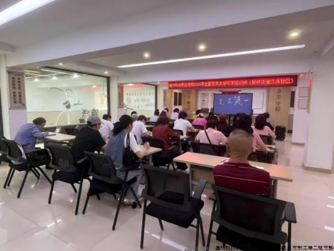 在新桥街道三浃社区潘如飞主任的大力支持下,学院关工委推动的“会昌老年大学写字培训班”于6月27日圆满结班。为期近两个月,33位社区老人沉浸于汉字书写与拼音学习的乐趣中。课程内容紧贴老年生活,涵盖姓氏认知、日常问候语书写、方位词学习、节日汉字、温州地名及家庭地址书写、本地名小吃及常见食物认识等。老人们不仅提升了书写技能,更增进了对传统文化的热爱。授课教师耐心细致的教学获得一致好评,学员们收获满满,精神文化生活得到丰富,期盼更多学习机会。此次活动是学院关工委践行“文化养老”、提升老年群体素养、助力社区精神文明建设的生动实践。