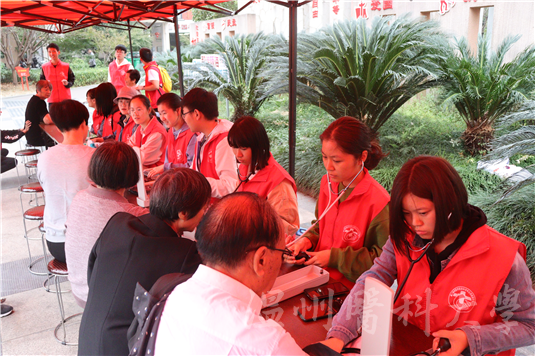 研究生志愿者对现场参与义诊的社区居民进行关节炎的筛查,为他们提供个性化的诊疗意见;本科生志愿者则为居民们提供血糖血压测量、推拿艾灸等常规医疗服务。前来体验筛查与推拿的居民络绎不绝,志愿者积极投入“你方唱罢我登场”的“无缝衔接”中来。
