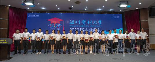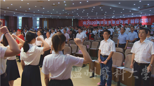 2020年7月1日上午,学校在茶山校区旭光厅举行温州医科大学2020届学生第二场毕业典礼,欢送1023名研究生、2880名本专科毕业生踏上新征程。校领导吕帆、李校堃、吕一军、程锦国、王良兴、曹建明、陈培根、金胜威、吕文革、汪军洪、张华杰出席典礼,学校相关部门、学院负责人,教师代表、毕业生代表参加线下典礼,因疫情防控需要,更多的毕业生和家长们通过参与线上直播的方式,共同见证这一庄严时刻。典礼由副校长曹建明主持。