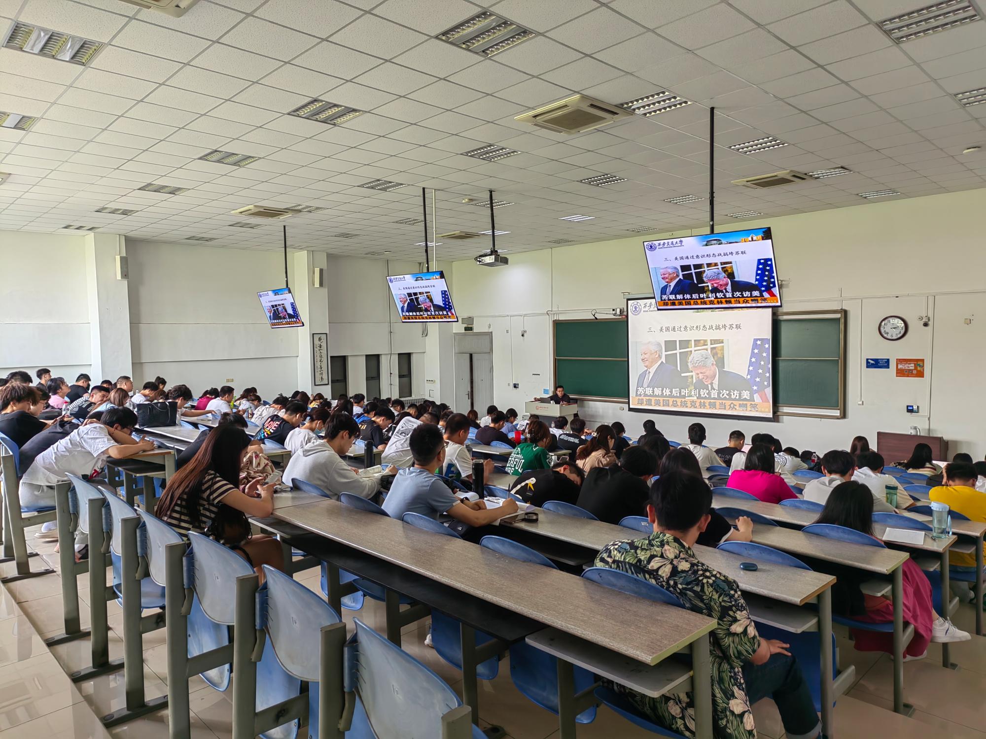 报告会上,高飞深入分析了意识形态工作在党和国家工作大局中的重要地位和作用。他指出,意识形态工作是为国家立心、为民族立魂的工作,关乎旗帜、关于道路、关乎国家政治安全。通过引用习近平总书记关于防范化解意识形态风险重要论述,结合“地震中的父与子”、“矛和盾的集合”等典型案例,高飞从为什么要高度重视意识形态工作、生活中的意识形态有哪些、如何感知生活中的意识形态,以及如何坚决抵制历史虚无主义等多个方面展开,帮助师生全面了解意识形态教育的重要内容。高飞勉励在场师生,作为新时代中国青年必须做到“三要”。一要坚定理想信念,用党的创新理论武装头脑,勇担科技报国使命。二要弘扬主旋律,唱响主旋律、弘扬网络正能量。三要增强忧患意识,做到居安思危,关注国内外时事,贯彻人类命运共同体理念。报告会在师生们热烈的掌声中圆满落下帷幕。
