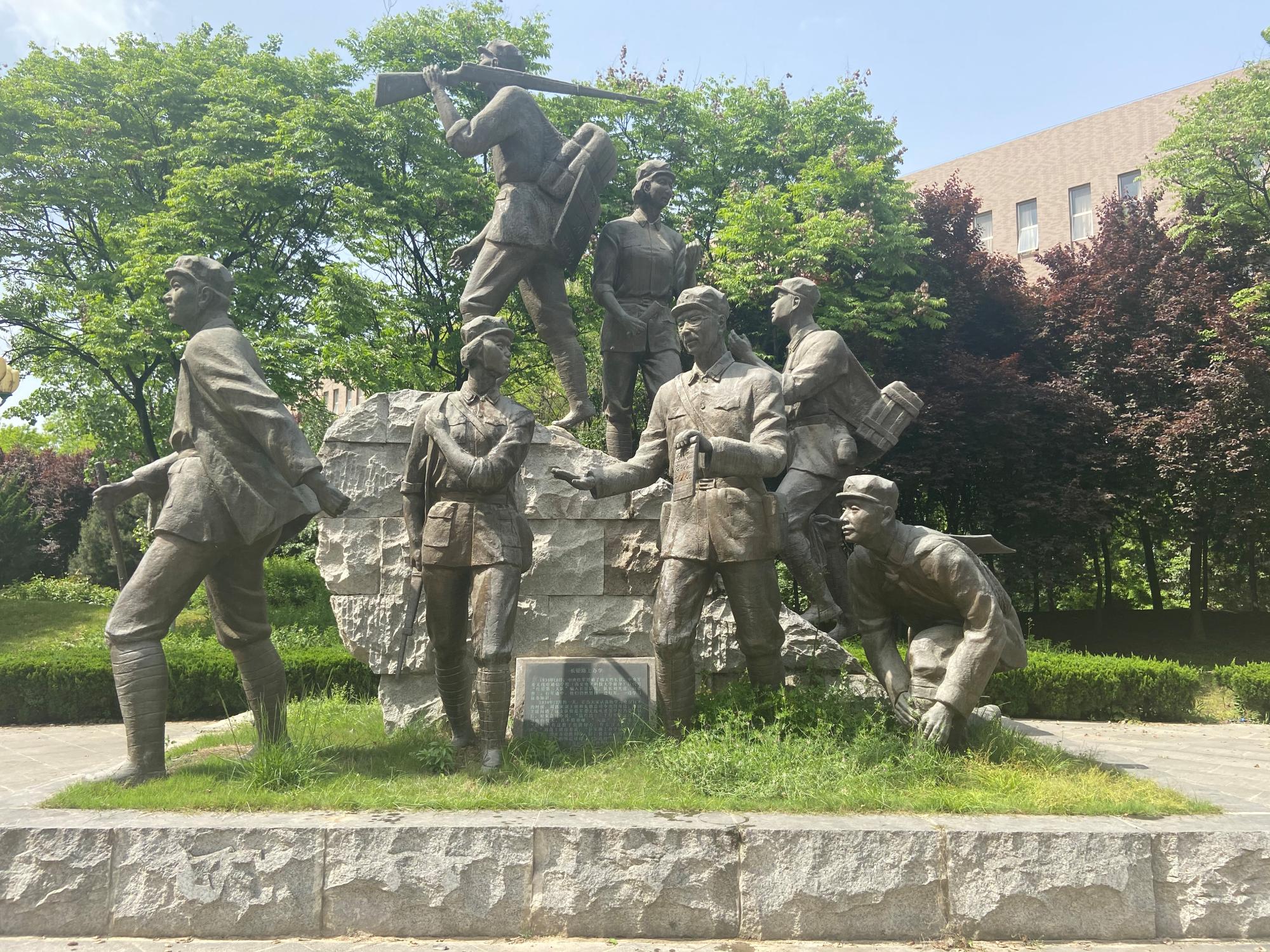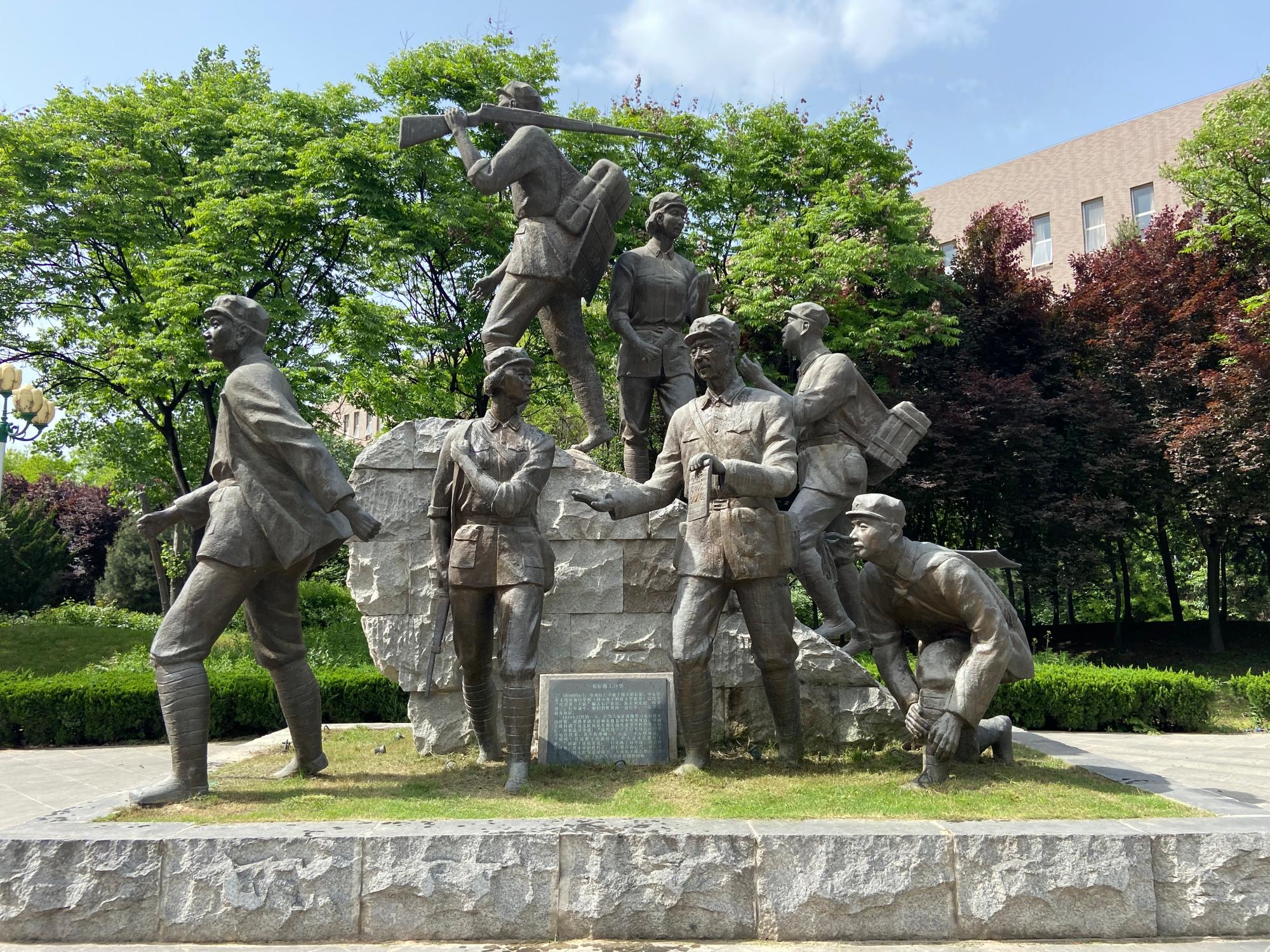 “长征路上办学”群雕,坐落在南校区信远楼南侧广场, “半部电台起家,长征路上办学”是西电光荣的传统,也是西电建校历史的缩影。