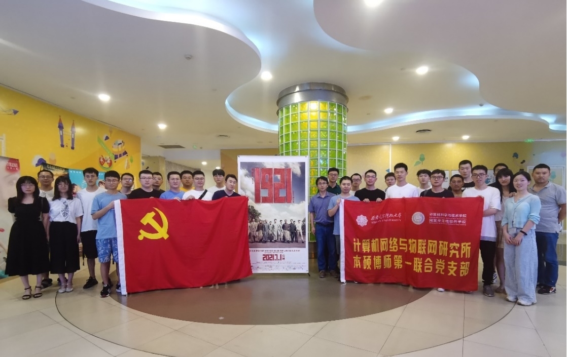 为了庆祝中国共产党成立100周年,扎实推进党史学习教育走深走实,充分发挥党支部联建的优势互补作用,进一步提升党支部党建工作成效,创新党史学习教育形式,2021年7月1日,西安电子科技大学计算机网络与物联网研究所本硕博师第一联合党支部与实践教学中心党支部联合开展了党史学习主题观影活动,近40名师生们共同观看了红色电影《1921》,一起回顾追溯百年党史起点,汲取初心根源奋进力量。